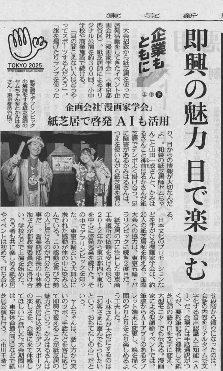 今回、東京2025デフリンピックを紙芝居で盛り上げられたことは光栄に感じております。